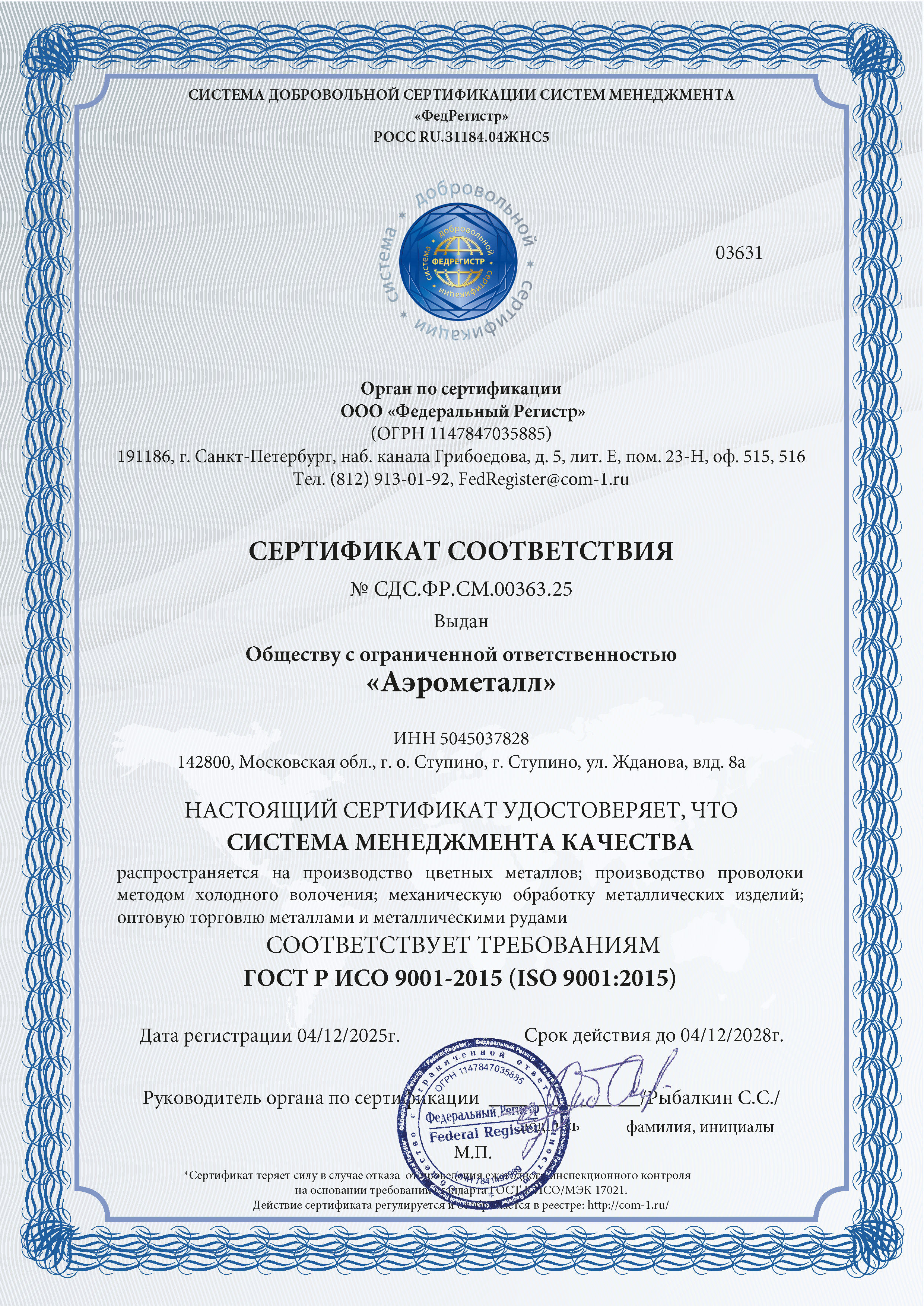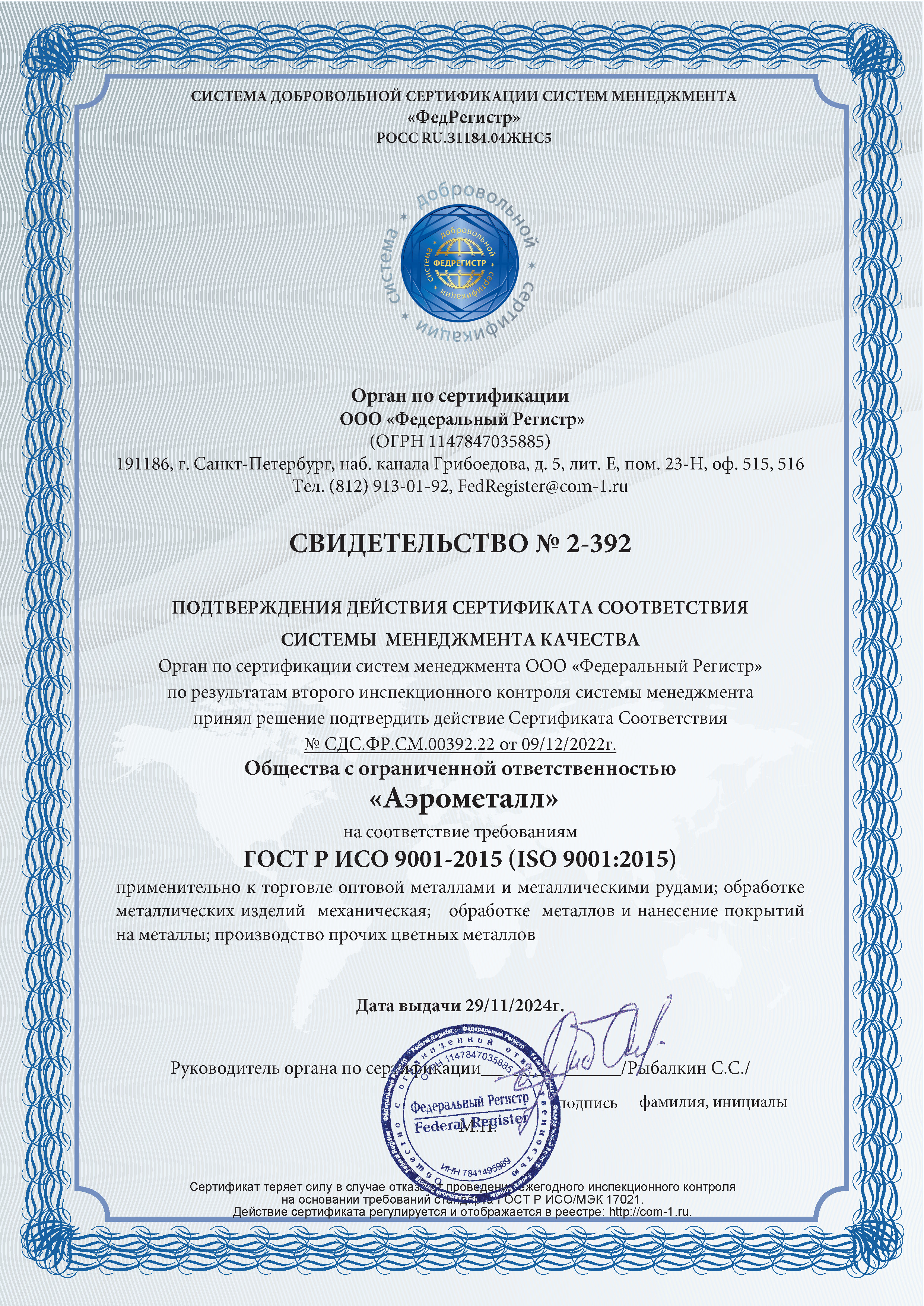 Благодарность директору ООО "Аэрометалл" Кольцову Алексею Трифоновичу |